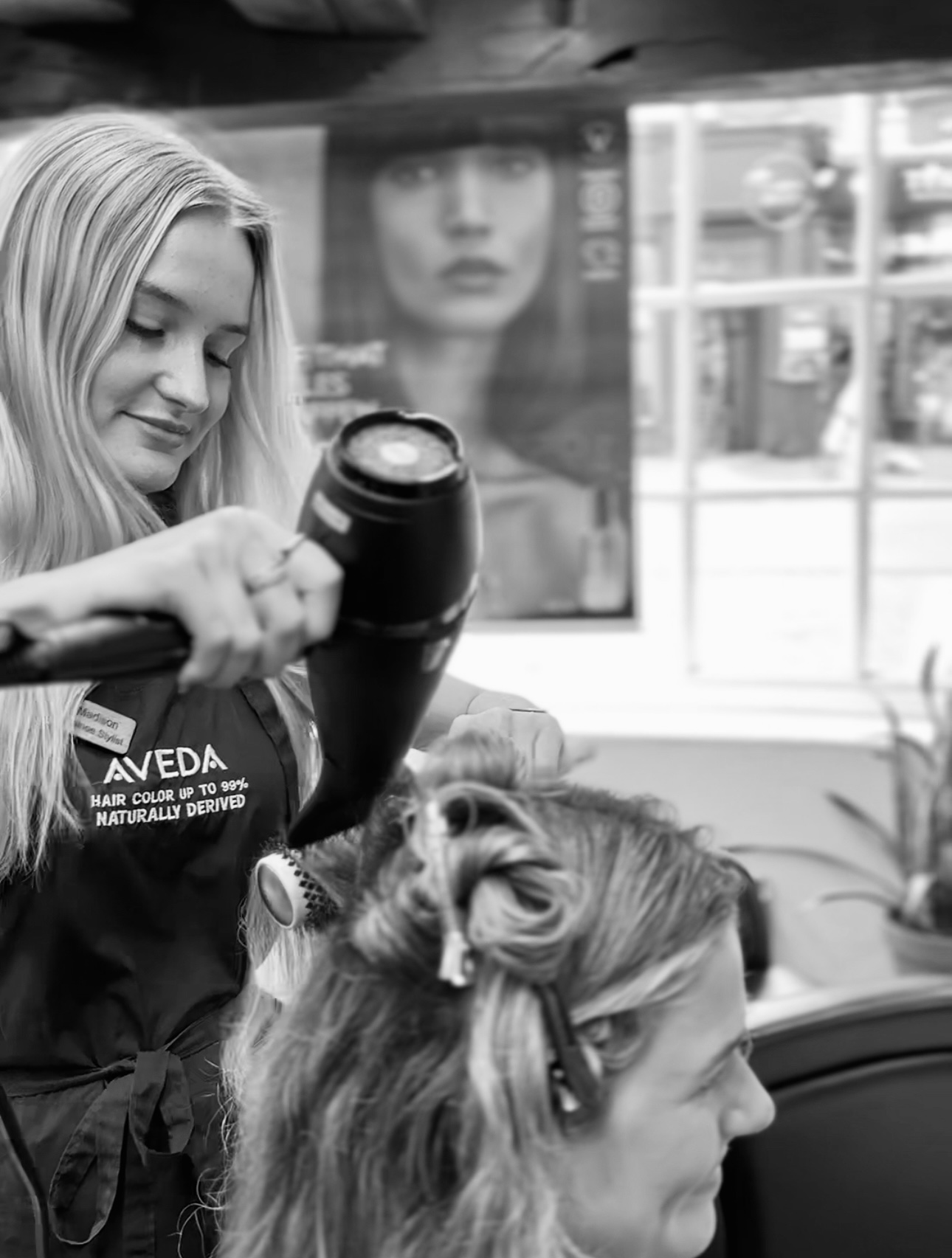 We are a calm, friendly Aveda salon in Farnham, focused on healthy hair, personalised service, and doing things properly. We take training seriously and we are proud to support apprentices as they grow into confident stylists.